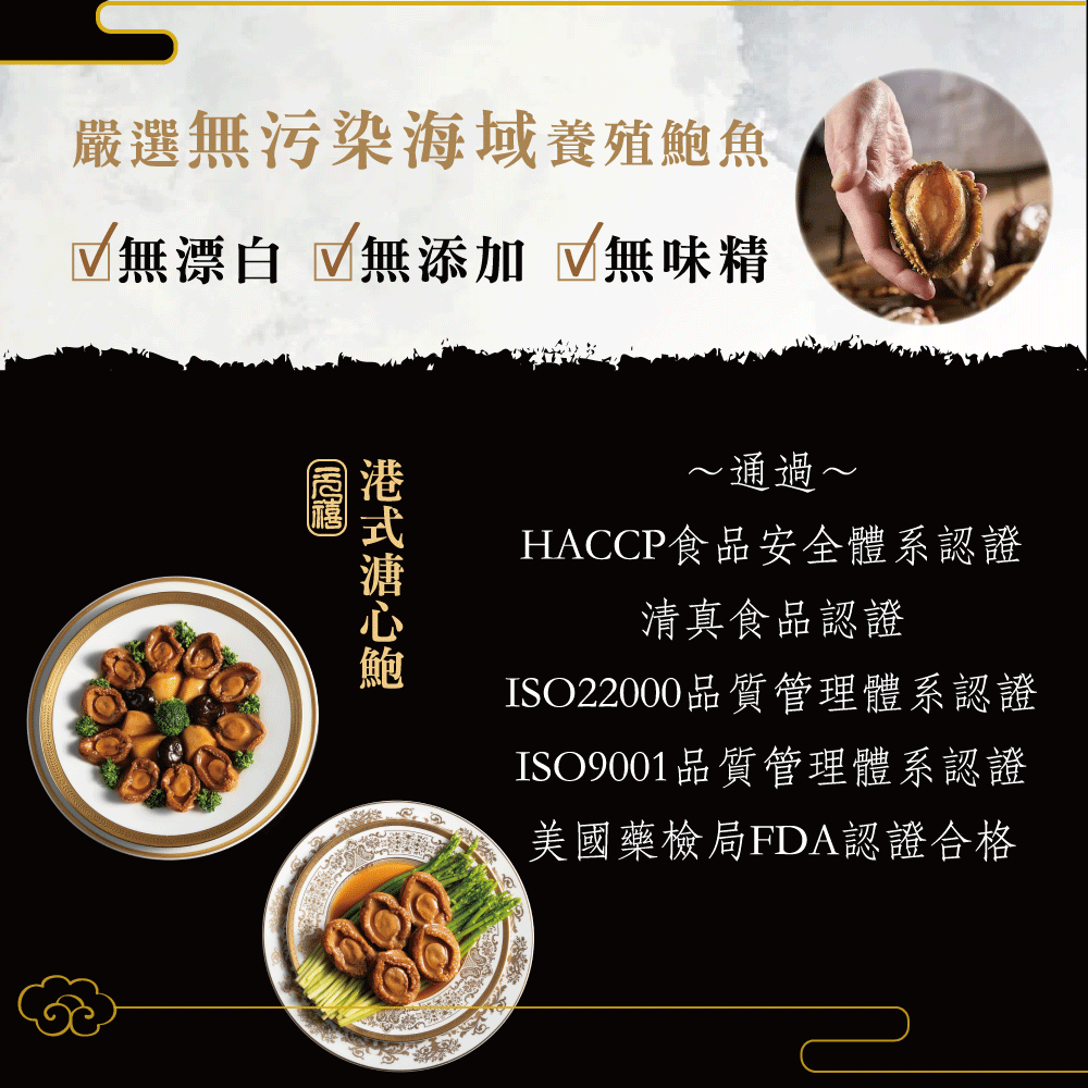 1.商品組合/規格:元禧品饌港式溏心鮑、元禧御饌港式溏心鮑